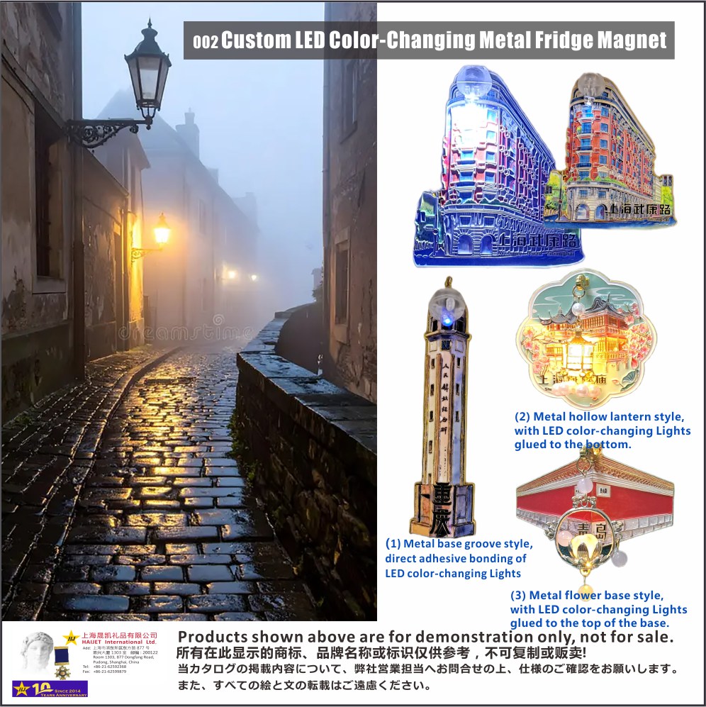 <p style="text-align:justify"><span style="font-size:10px;"><span style="font-family:Microsoft YaHei;"><span lang="EN-US">This time, we'll introduce the unique effects of combining LED Color-Changing Lights with metal refrigerator magnets for your reference. You can use these basic concepts to further unleash your imagination and design more distinctive metal badges and refrigerator magnets for your own customers: </span></span></span></p>